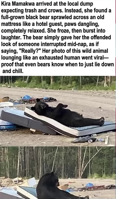 A black bear lounging on a discarded mattress at a local dump became an unexpected symbol of wild comfort—and a viral reminder that even nature knows how to take a break.